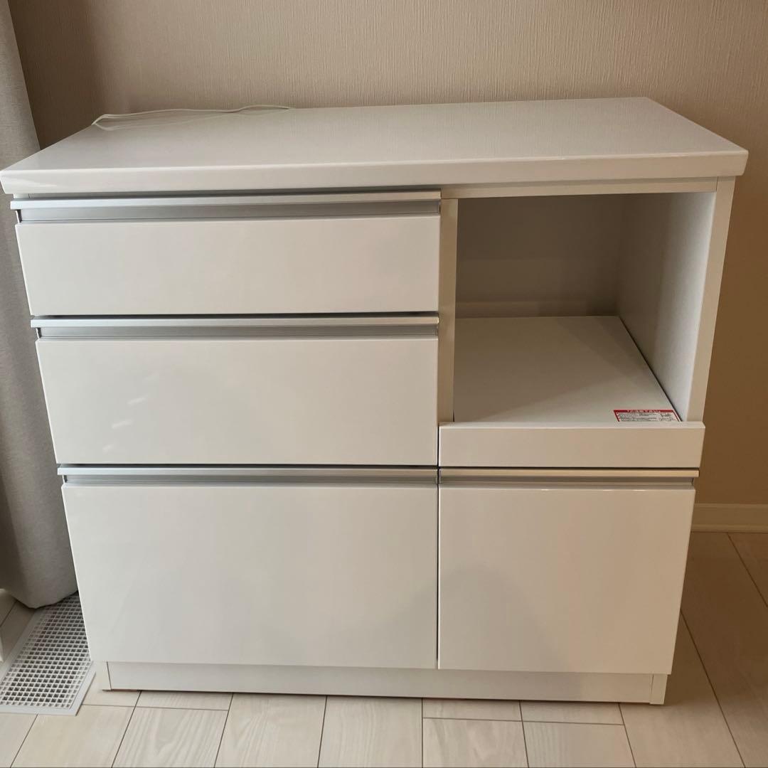 ニトリのレンジ台です。幅 88、奥行 41、高さ 84センチくらいです。引き出し3段付き。炊飯器置き場スライド式。美品 AYANO プロージット キッチンカウンター レンジボード ソフトクローズ。【ウニコ unico】ストラーダ◆キッチンボード◇訳あり◆特価品◇。幅伸縮 2口コンセント 高さ調整 レンジラック ゴミ箱上ラック 白レビュー